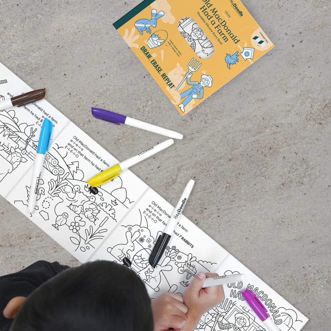 Książeczka Silikonowa do Wielokrotnego Kolorowania - Old MacDonald Had a Farm