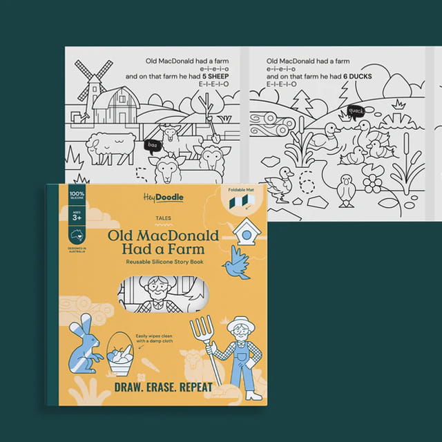 Australijska firma HeyDoodle zaprojektowała opakowania tak, aby było ładne i praktyczne. Książeczki idealnie sprawdzą się na prezent, a potem w zabawie w domu, w podróży, w samochodzie, u babci i cioci, a po zabawie, można ponownie schować flamastry i matę do estetycznego opakowania.