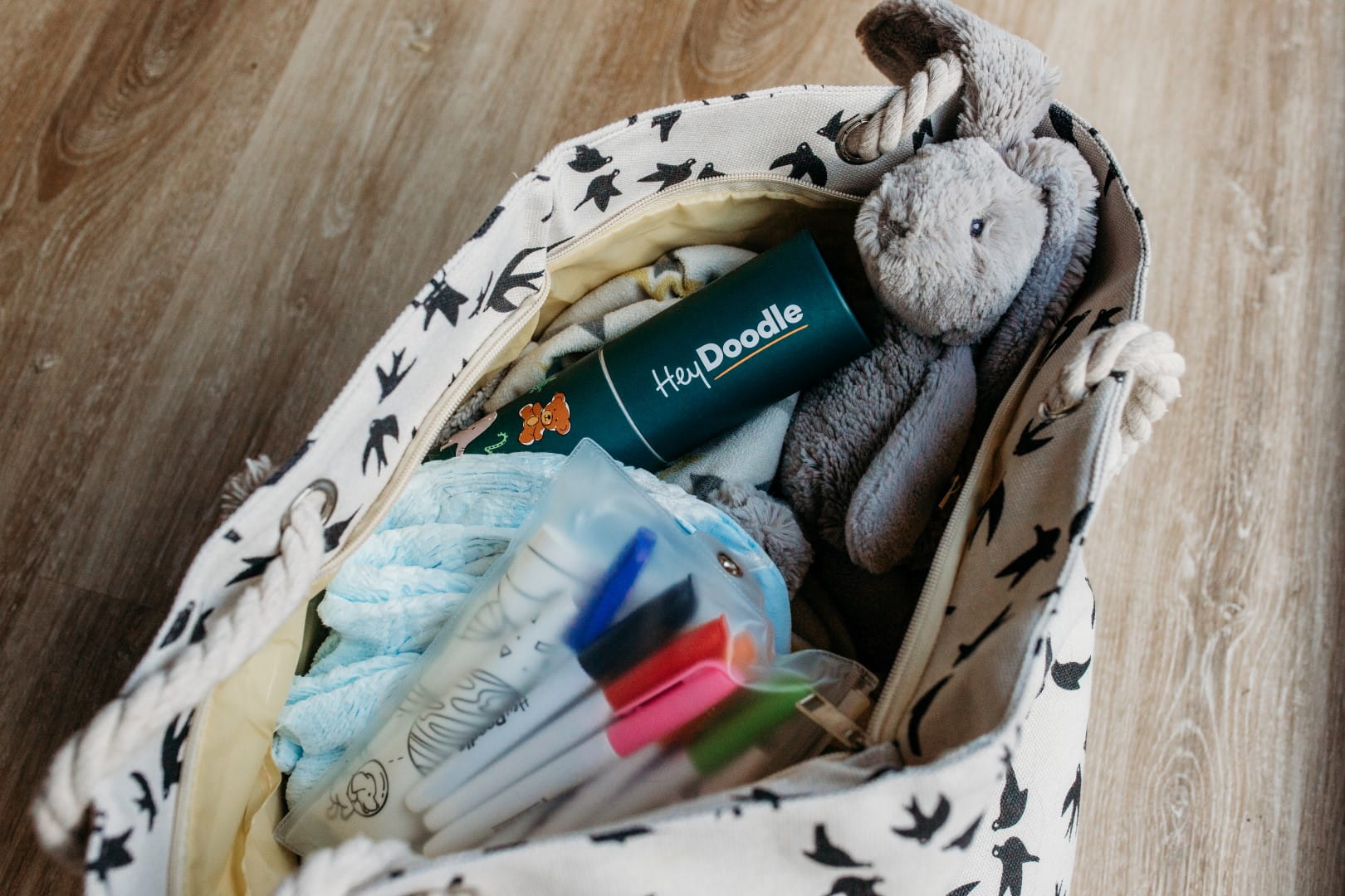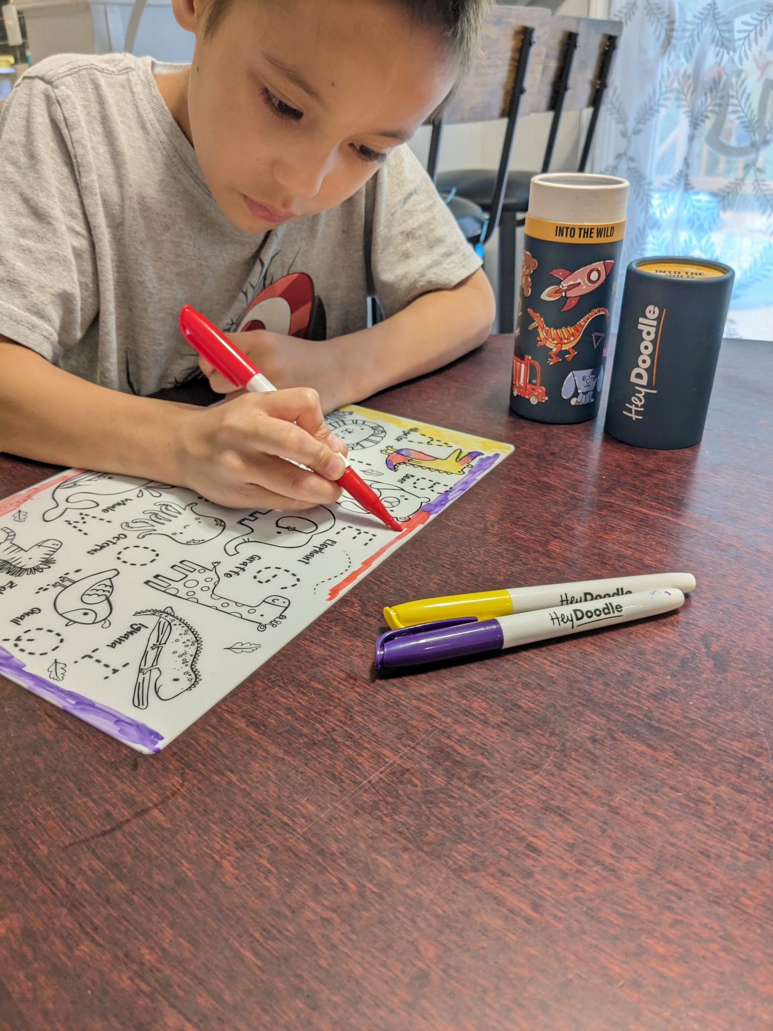 Australijska firma HeyDoodle zaprojektowała opakowania tak, aby było ładne i praktyczne, dlatego maty idealnie sprawdzą się na prezent, a potem w zabawie w domu, w podróży, w samochodzie, u babci i cioci, a po zabawie, można ponownie schować flamastry i matę do estetycznego opakowania.