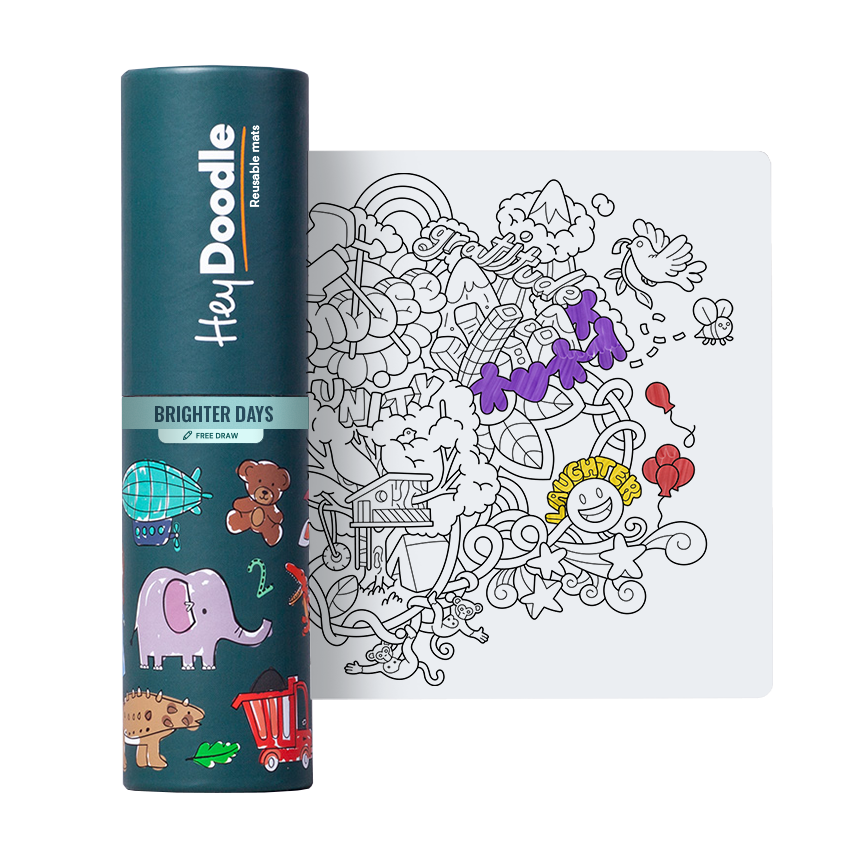 Australijska firma HeyDoodle zaprojektowała opakowania tak, aby było ładne i praktyczne, dlatego maty idealnie sprawdzą się na prezent, a potem w zabawie w domu, w podróży, w samochodzie, u babci i cioci, a po zabawie, można ponownie schować flamastry i matę do estetycznego opakowania.
