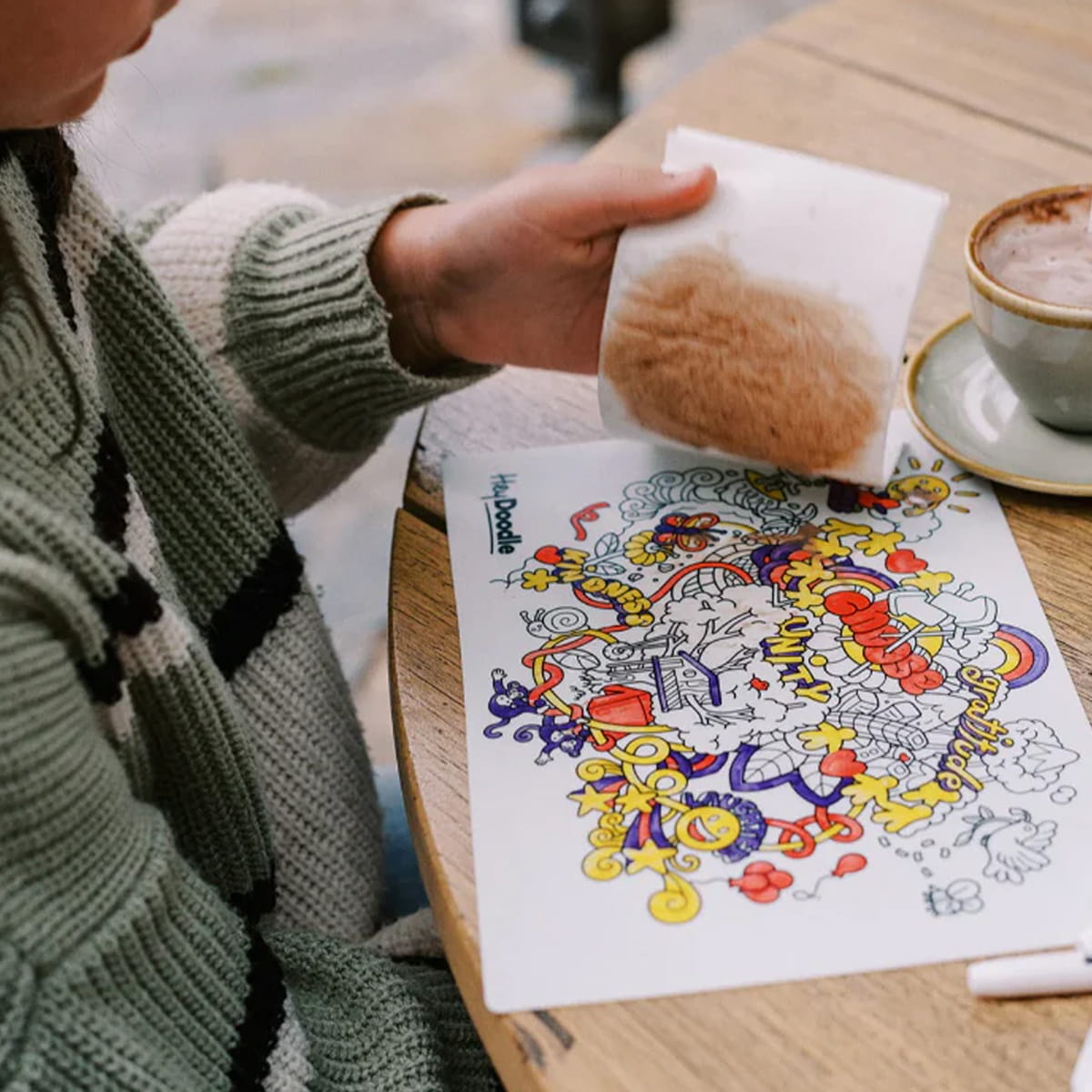 - Mata do wielokrotnego kolorowania z wesołymi bazgrołami.